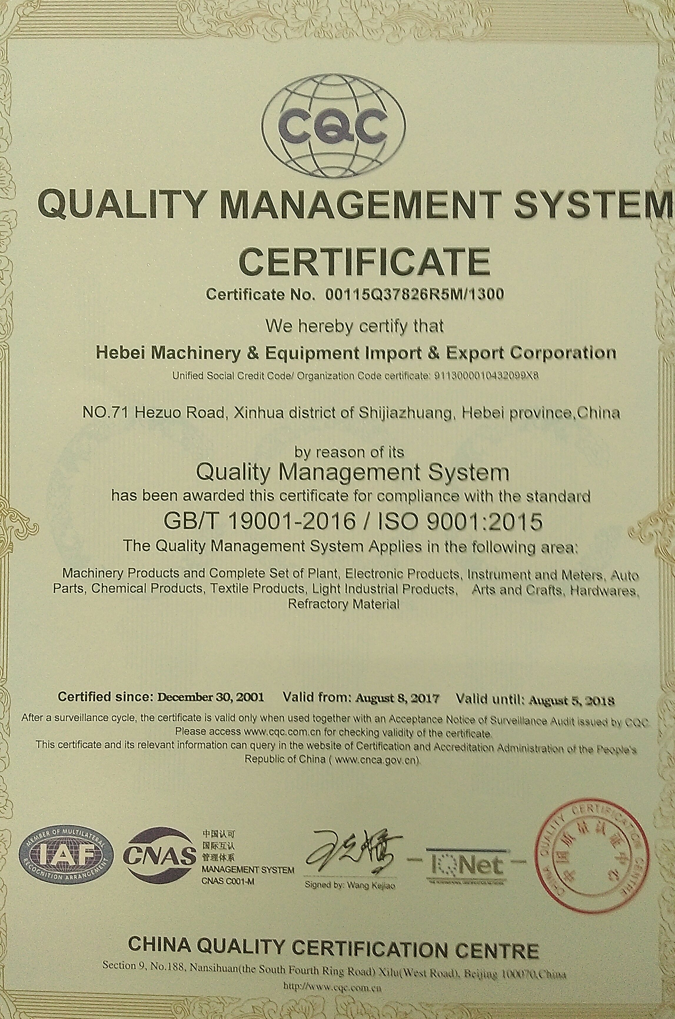 我公司顺利通过ISO9000质量管理体系换版认证