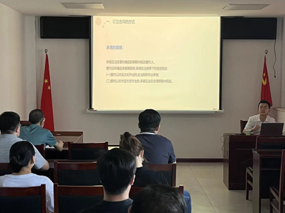 为深入学习贯彻习近平法治思想,切实做好《民法典》学习宣传,推动普法工作落到实处,进一步增强职工法治意识,提升公司法律风险防控,5月27日,公司组织开展《民法典》专题培训,邀请河北世纪方舟律师事务所表壮飞律师,为全体职工就《民法典》中合同编有关内容进行了深入解读。